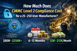 How Much Does CMMC Level 2 Compliance Cost for a 25–250 User Manufacturer? CMMC Level 2 compliance typically costs between $80,000 and $250,000+ in the first year for aerospace and